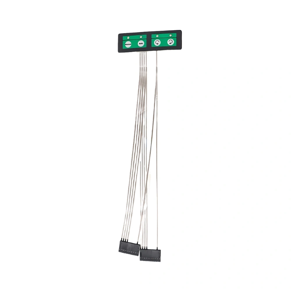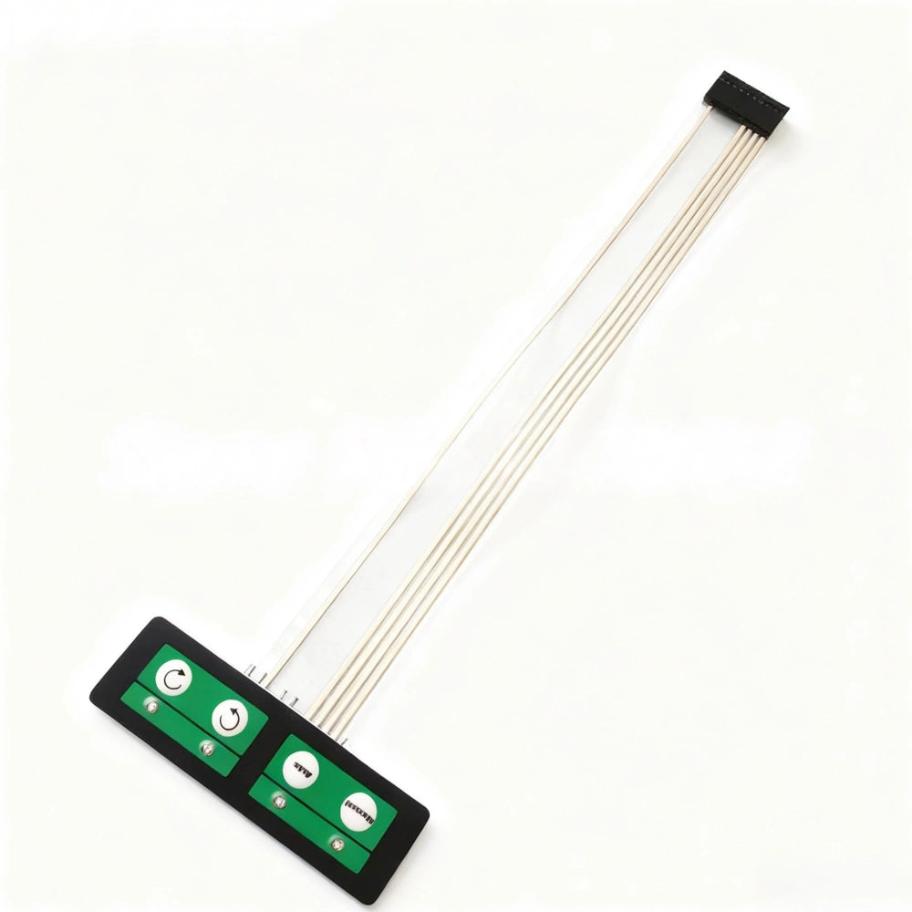 This media feed control panel is designed for use in wide-format printers. It includes three tactile membrane keys for precise media roll and feed operations. The keypad is connected via flat ribbon cable and is ideal for replacing old or worn feed panels in printing systems that require reliable media handling.