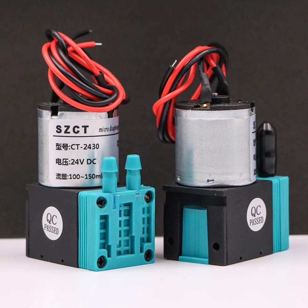 The CT-2430 is a precision-engineered micro diaphragm ink pump designed for small and medium-sized UV and solvent inkjet printers. Operating at 24V DC with a low power consumption of 3W, this pump delivers a consistent flow rate of 100–150 ml/min, making it ideal for continuous ink supply or circulation in compact printing systems.