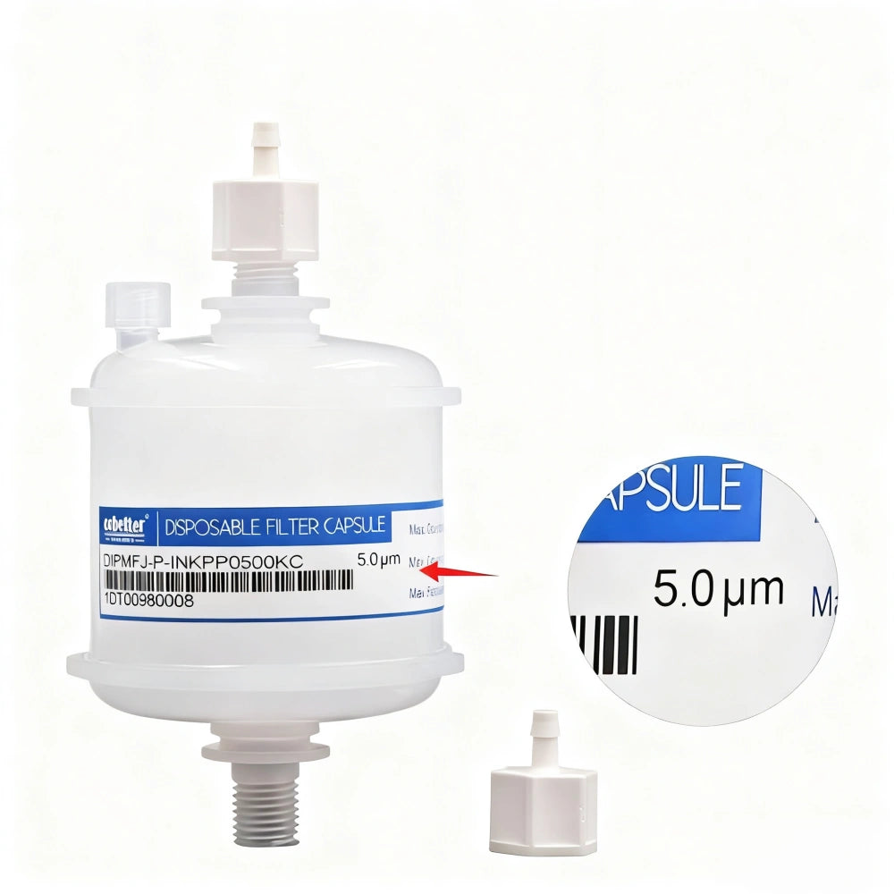 ⚪ White Capsule Filter: Suitable for eco-solvent and water-based printers, ensuring stable filtration and clean ink output.