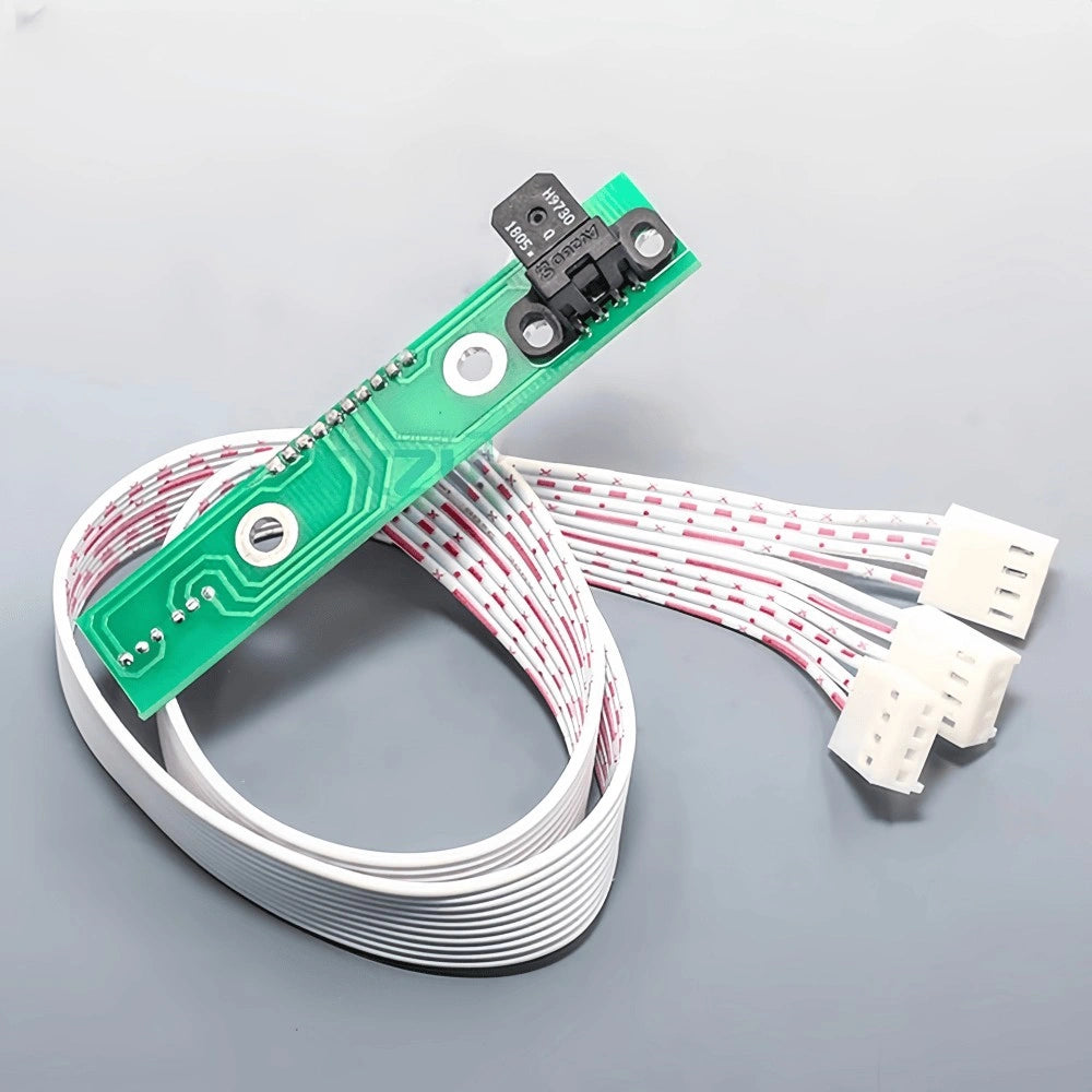 The H9730 Encoder Sensor (1715) is a precision optical grating decoder designed for large-format printers such as 3208H, 3206B, and 3278N models. It reads the grating scale on the encoder strip to ensure accurate positioning of the carriage, achieving consistent printing quality and smooth motion during high-speed operation.