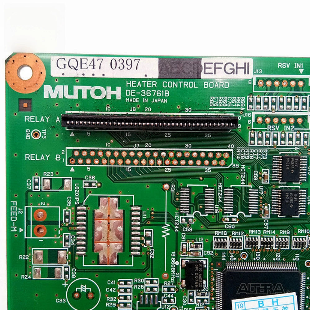 This Heater Relay Board assembly is suitable for Mutoh Drafstation and ValueJet series printers. It is the original Mutoh part (number DE-36765B), responsible for controlling the heater power and maintaining temperature stability.