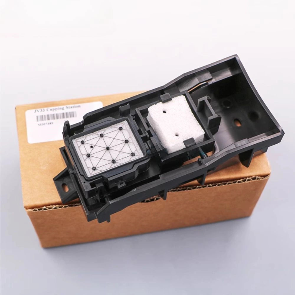 This capping station is specially designed for Mimaki JV33 series printers. It features a durable, corrosion-resistant body and a high-quality imported sponge ink pad that ensures excellent ink absorption and tight sealing. The push-pull design provides smooth alignment with the printhead, making it ideal for maintaining printhead performance, reducing clogs, and extending lifespan. It is compatible with a wide range of eco-solvent and dye sublimation printing applications.