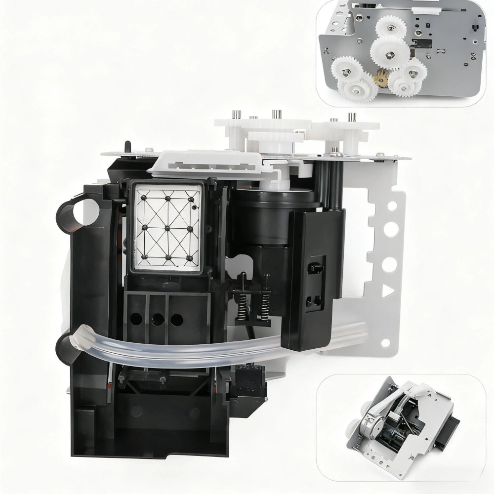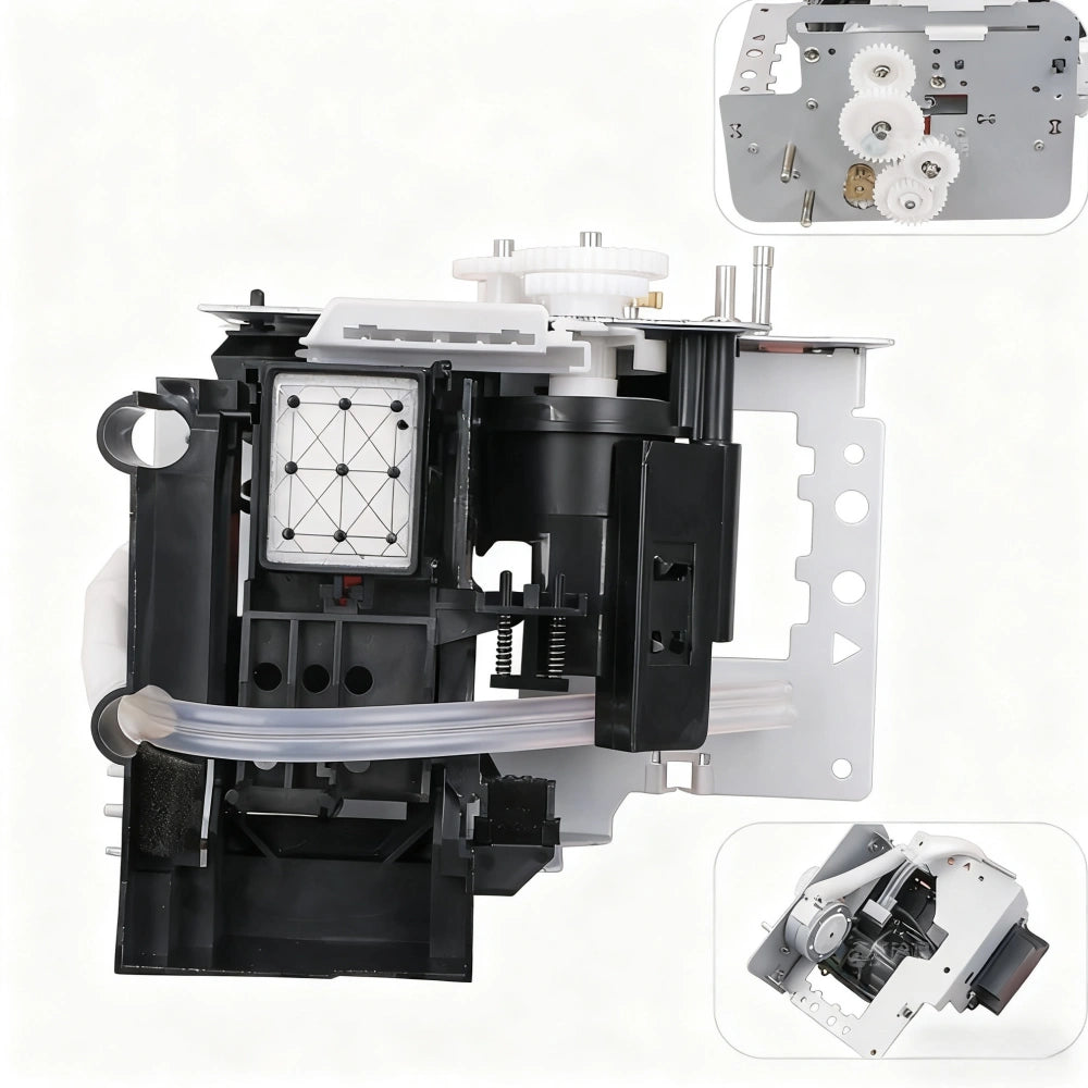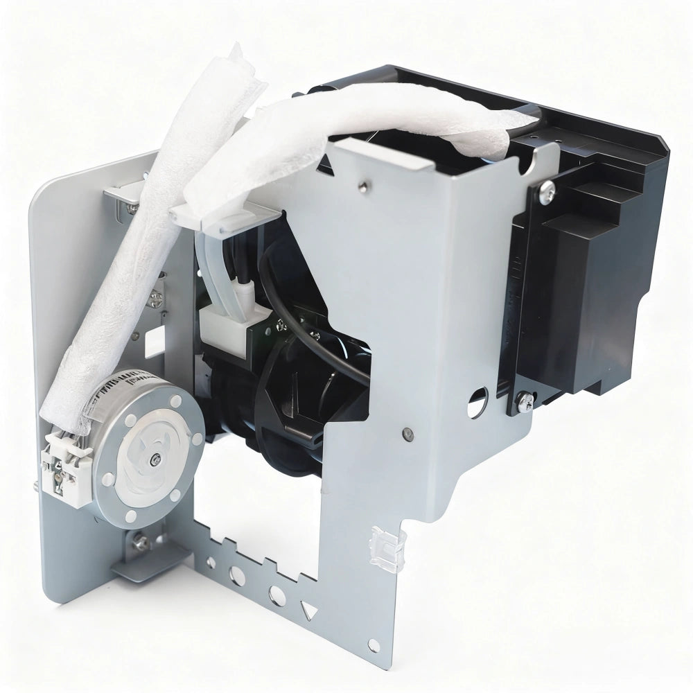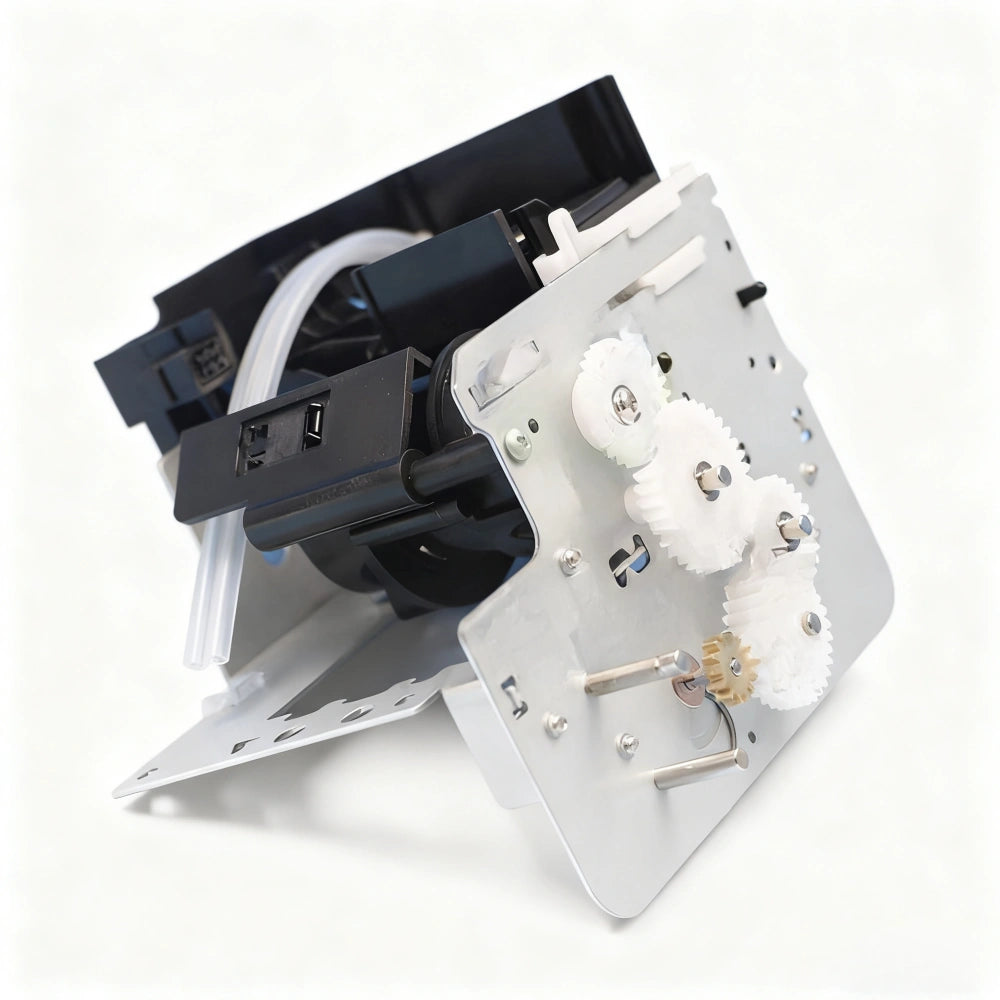 This imported cleaning and pumping assembly is specially designed for Mutoh wide-format printers including models VJ-1604, 1624, 1638, and 900C. The unit integrates a high-quality ink suction pump, sponge-based capping station, and gear-driven flushing system to ensure stable nozzle maintenance, ink waste discharge, and optimal printhead sealing. Built from corrosion-resistant materials, this unit offers excellent durability and compatibility with eco-solvent and mild solvent inks. The integrated tubing and gear system ensure smooth ink flow and easy operation.
