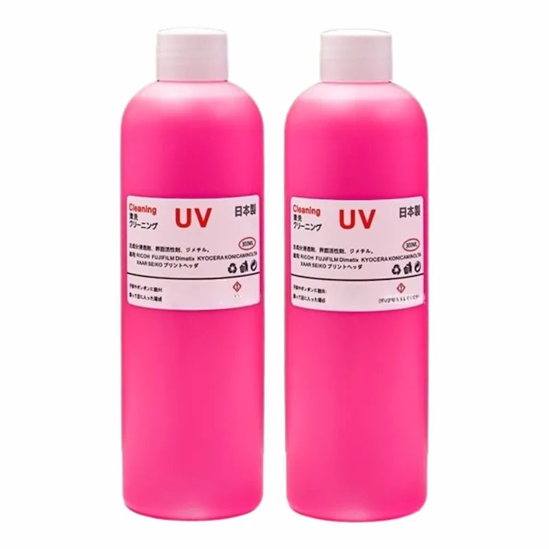 Quickly dissolves UV-ink clogs while protecting nozzle plates.