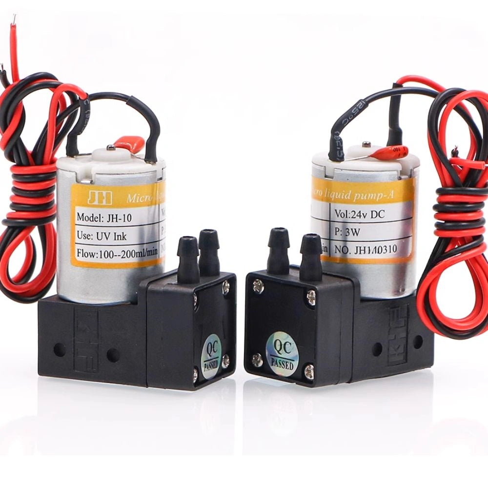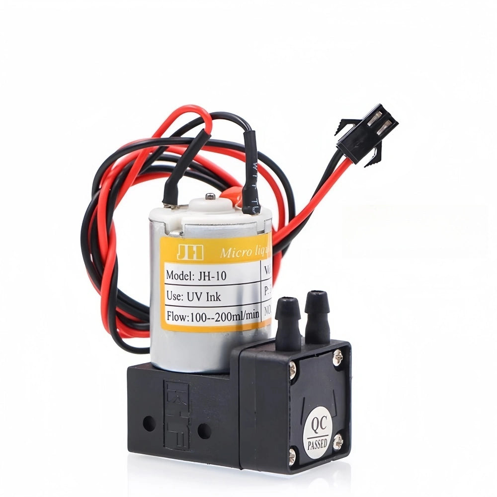 The JH-10 is a compact micro diaphragm ink pump specially designed for UV flatbed printers and other small-format UV printing equipment. Operating at 24V DC with an ultra-low power consumption of just 3W, this pump delivers a stable flow rate of 100–200 ml/min, ideal for continuous UV ink circulation and precise ink supply in industrial and desktop-grade systems.