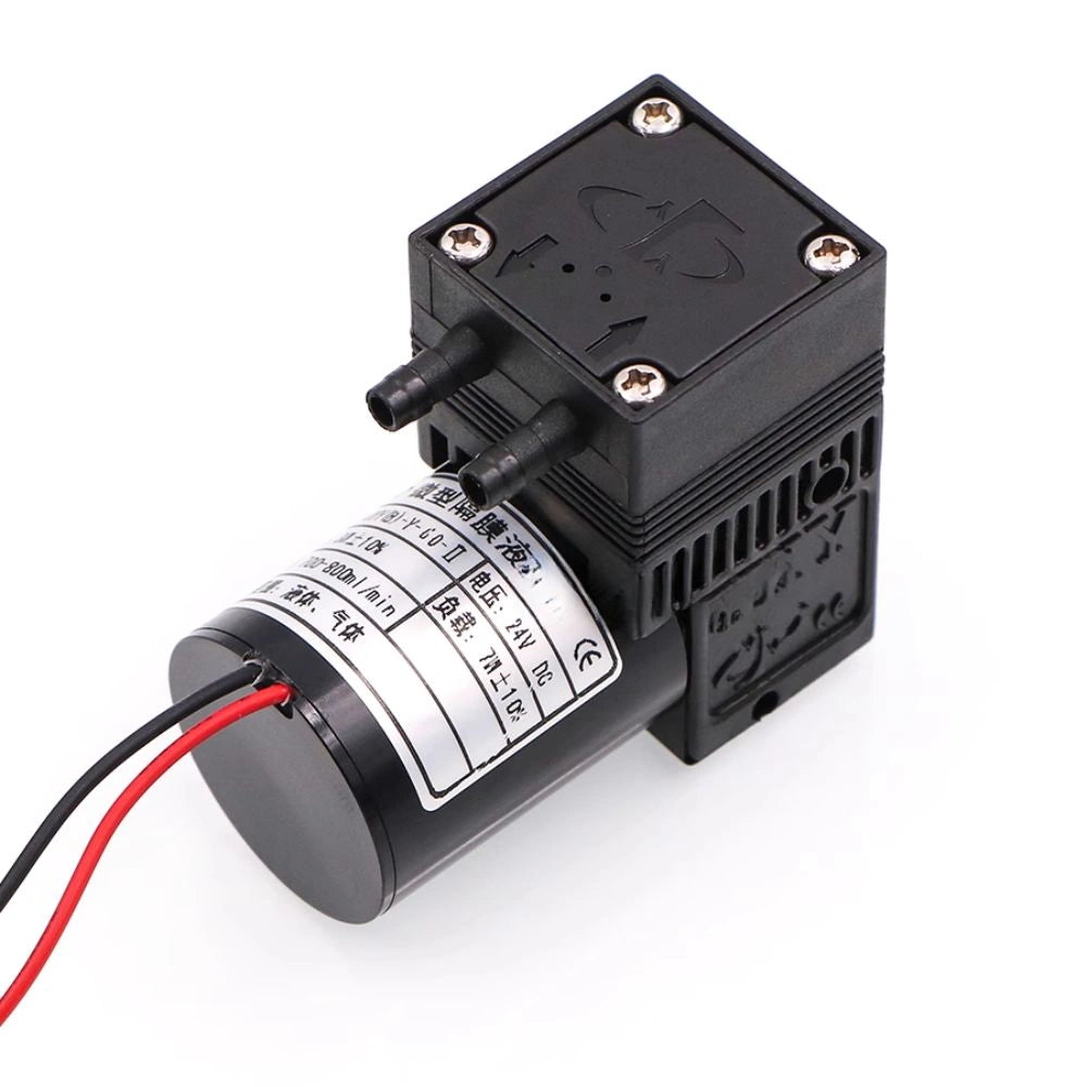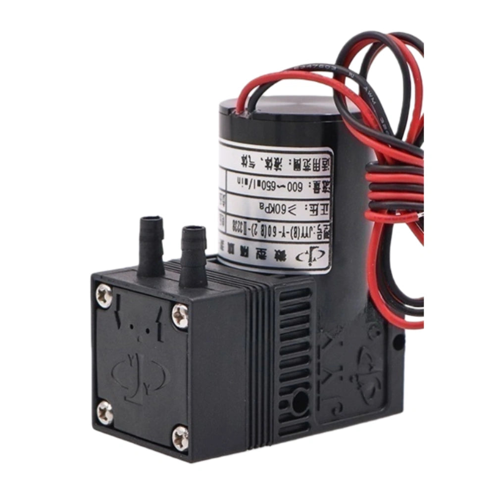 The JYY(B)-Y-60-II is a high-capacity diaphragm ink pump built for large-format printing systems such as coding machines, spray plotters, and UV inkjet printers. With its robust 24V 7W power system, it delivers a flow rate of 700–800ml/min, supporting both liquid and gas transfer functions in industrial printing workflows.
