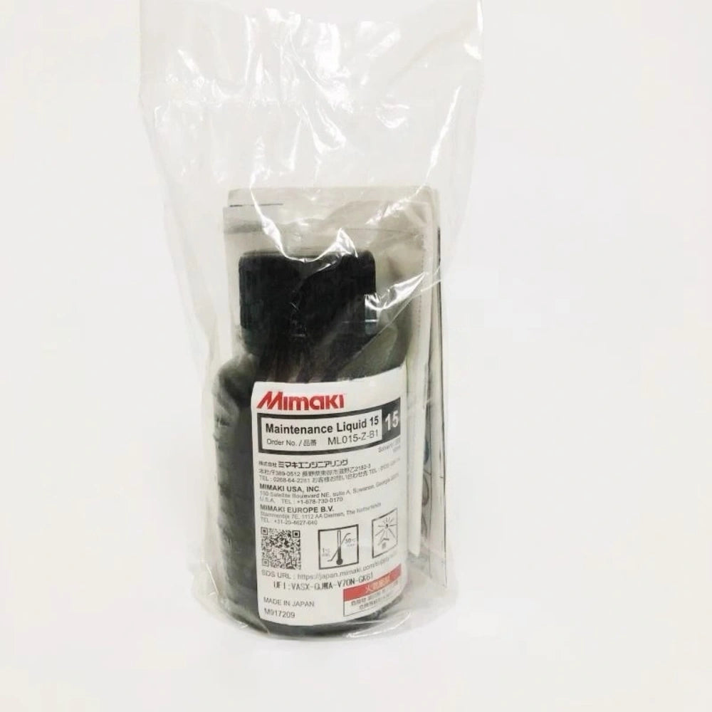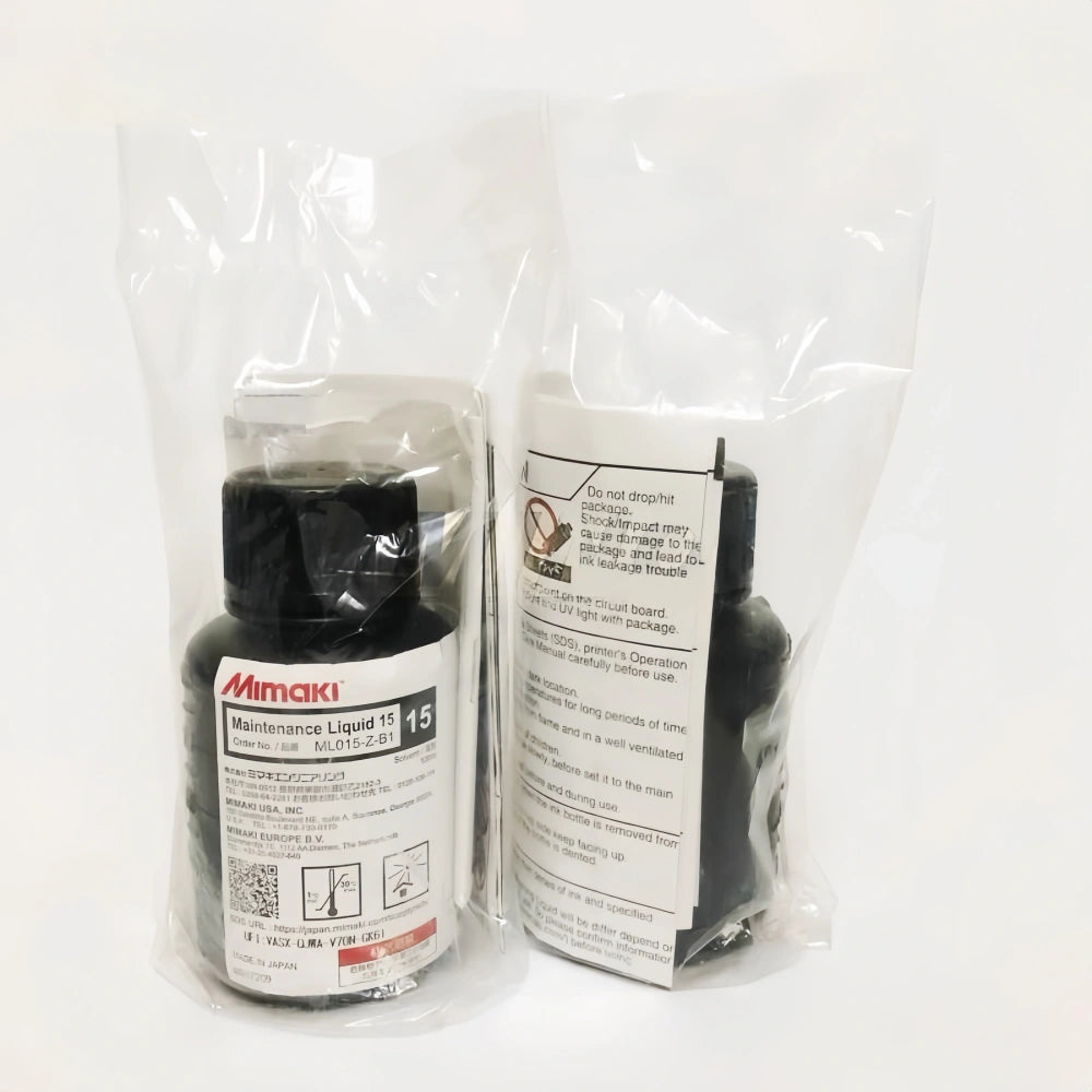 Genuine Mimaki Maintenance Liquid 15 for daily UV printer care. Use for wet-capping, cap/wiper cleaning, short nozzle soaks and gentle priming to keep nozzles stable and reduce banding and drop-outs.
