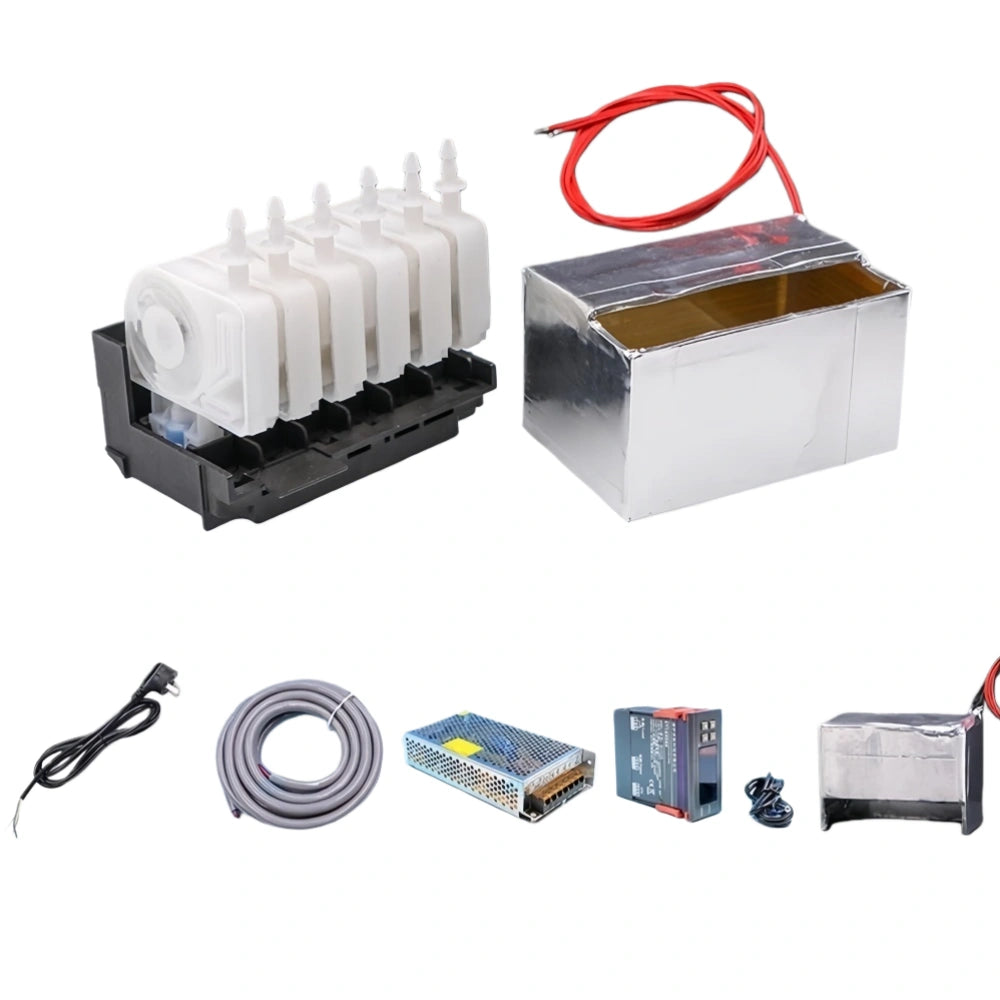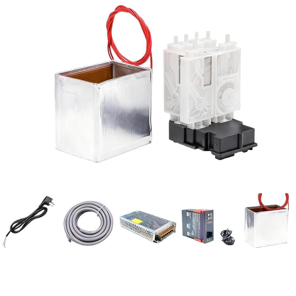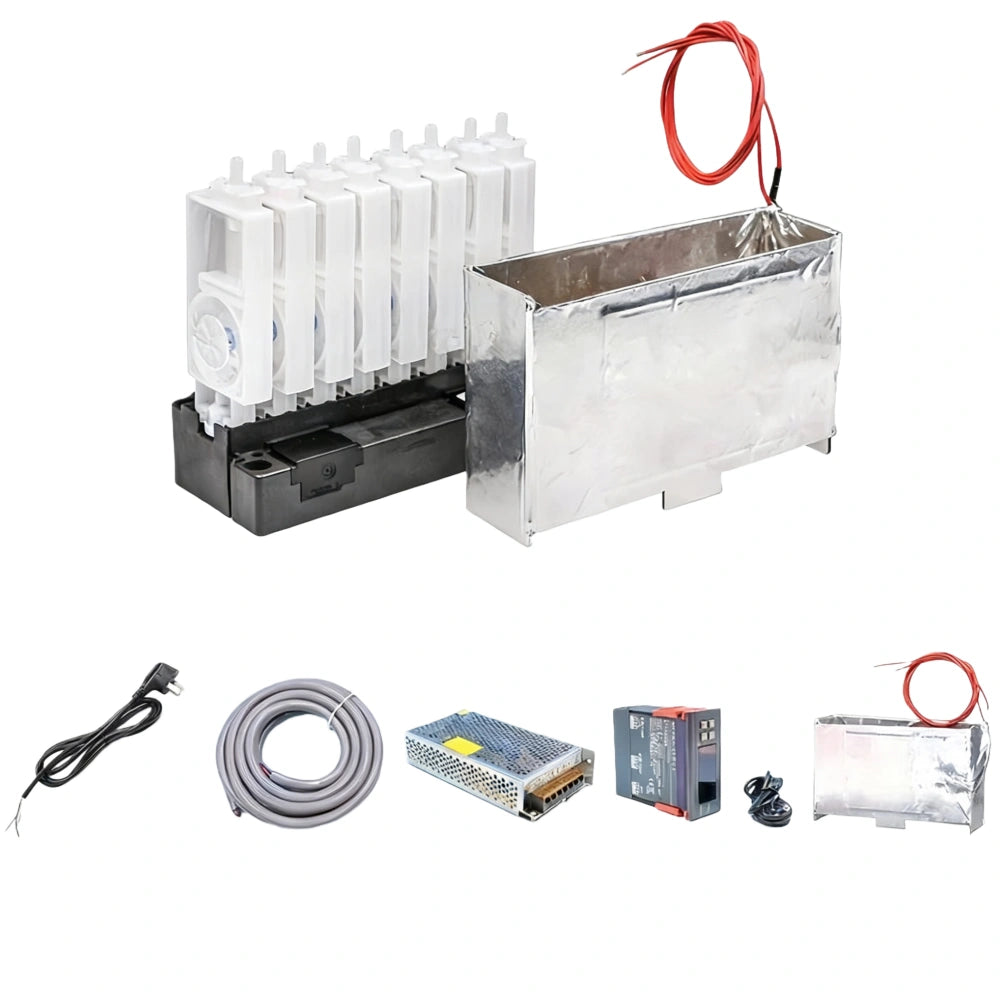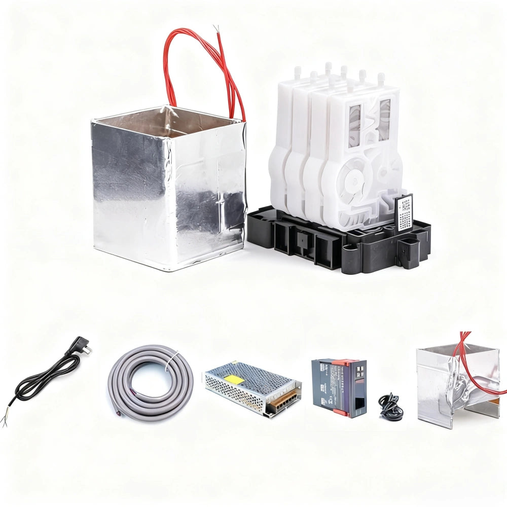 The Temperature Control Heating Kit is designed to maintain a stable ink temperature for UV, eco-solvent, and digital printers during cold or humid environments. It effectively prevents printing problems such as ink clogging, color fading, and line breaks caused by low-temperature ink viscosity.