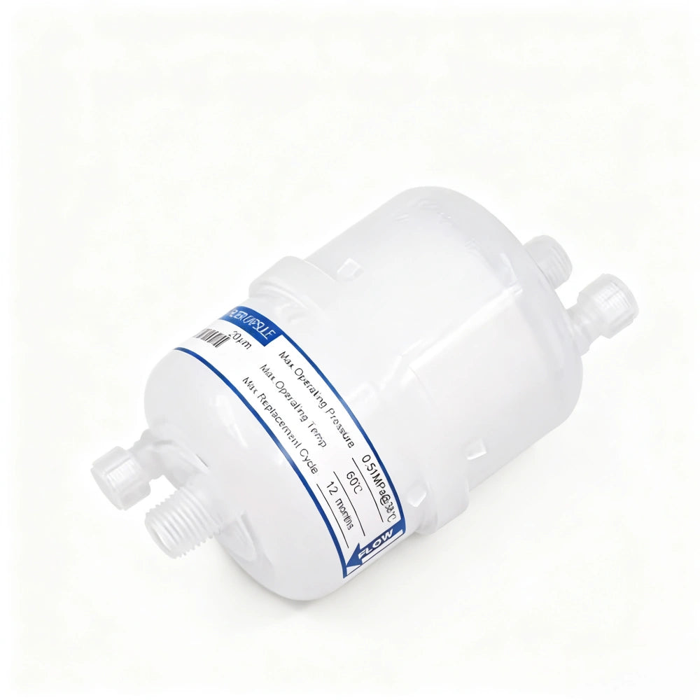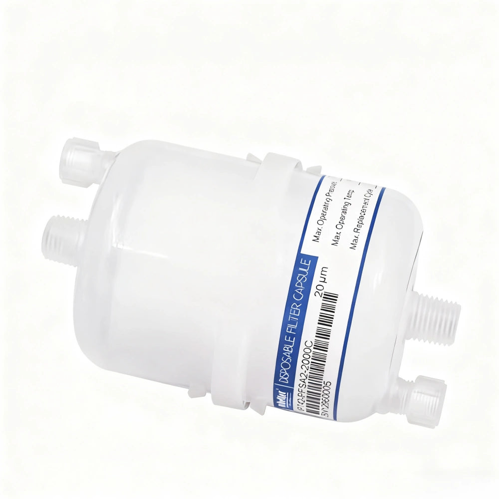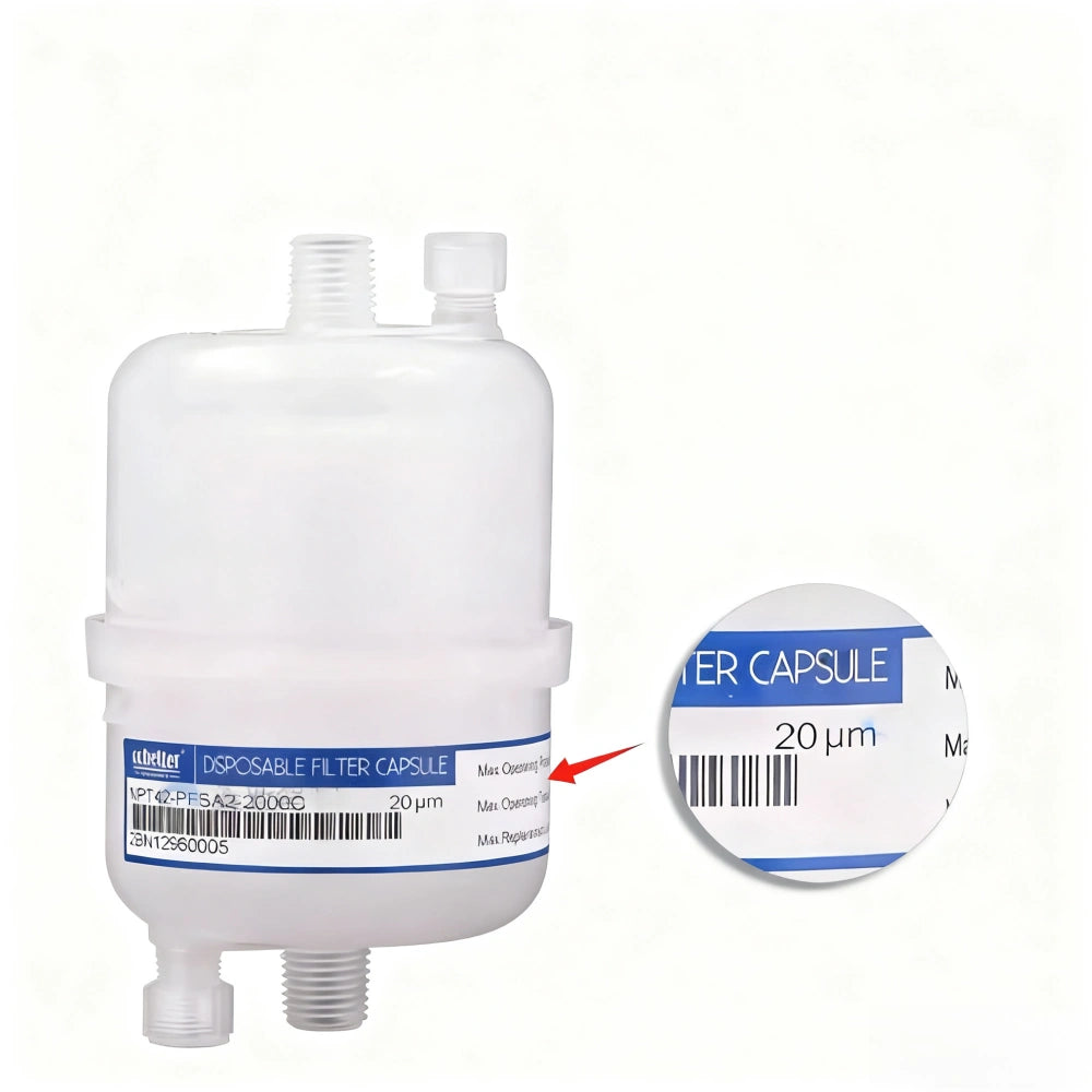 The NPT42-PFSA2-2000C is a main-line capsule ink filter built for UV and ceramic printers that require high flow capacity and stable ink delivery. Featuring an 8-layer nanofiber membrane, this model ensures 20µm filtration accuracy while maintaining low pressure loss and consistent ink flow under continuous operation.