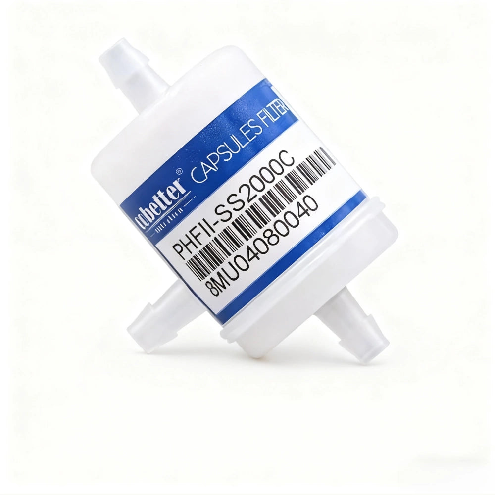 Constructed using heat-welded, adhesive-free assembly, the filter avoids secondary contamination and offers excellent pressure and chemical resistance. The compact size (46×22mm) allows seamless integration into ink pipelines, and it is available in both white and black casings to suit various system designs.