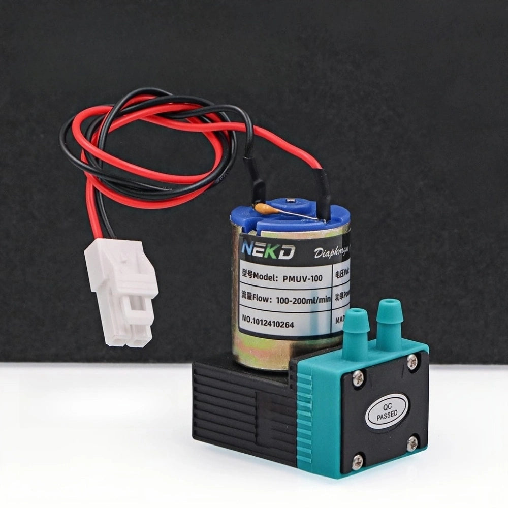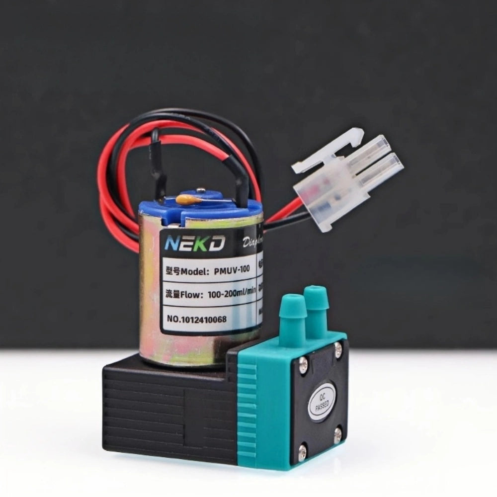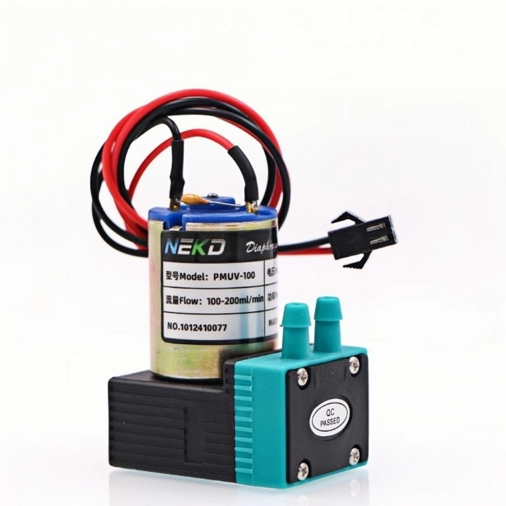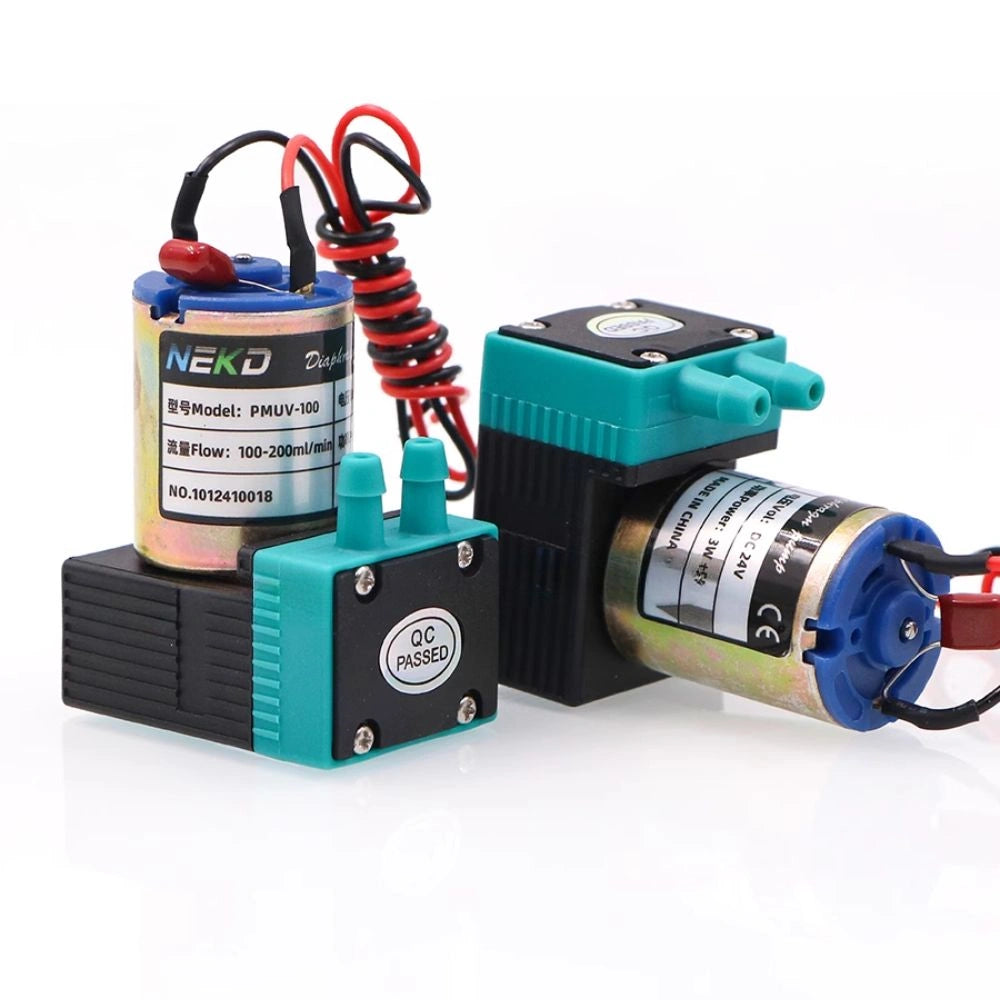 The PMUV-100 is a compact 3W UV ink pump designed for small and medium-sized UV printers. Operating on a 24V DC power supply, it provides a reliable flow rate between 100 to 200ml/min, making it ideal for stable ink circulation in precision UV printing applications.