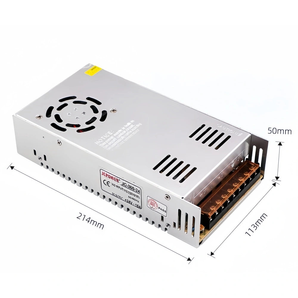 This 350W DC regulated switching power supply is available in multiple voltage outputs including 24V, 36V, 42V, and 48V, with current ranging from 7.3A to 15A depending on model. Designed for piezoelectric large-format printers and plotters, it offers reliable and stable power to motors, printheads, and control systems. The metal enclosure features strong heat dissipation and built-in cooling fans (select models). It also comes with triple protection: overload, overvoltage, and short circuit prevention.