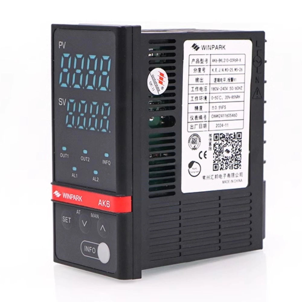 The WINPARK AK6-BKL210-C096R-X Intelligent Temperature Controller is a high-precision PID temperature controller equipped with dual digital displays and multiple output modes. Compatible with SSR (Solid State Relay) modules like CHB402, it supports a wide voltage input range of 180–240V AC, making it ideal for industrial applications such as UV flatbed printers, drying ovens, heat press machines, and thermal control systems.