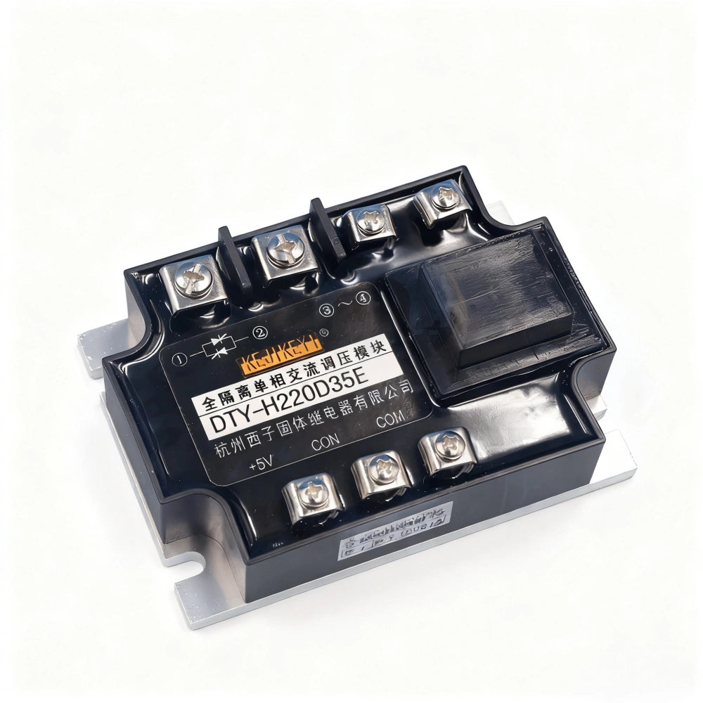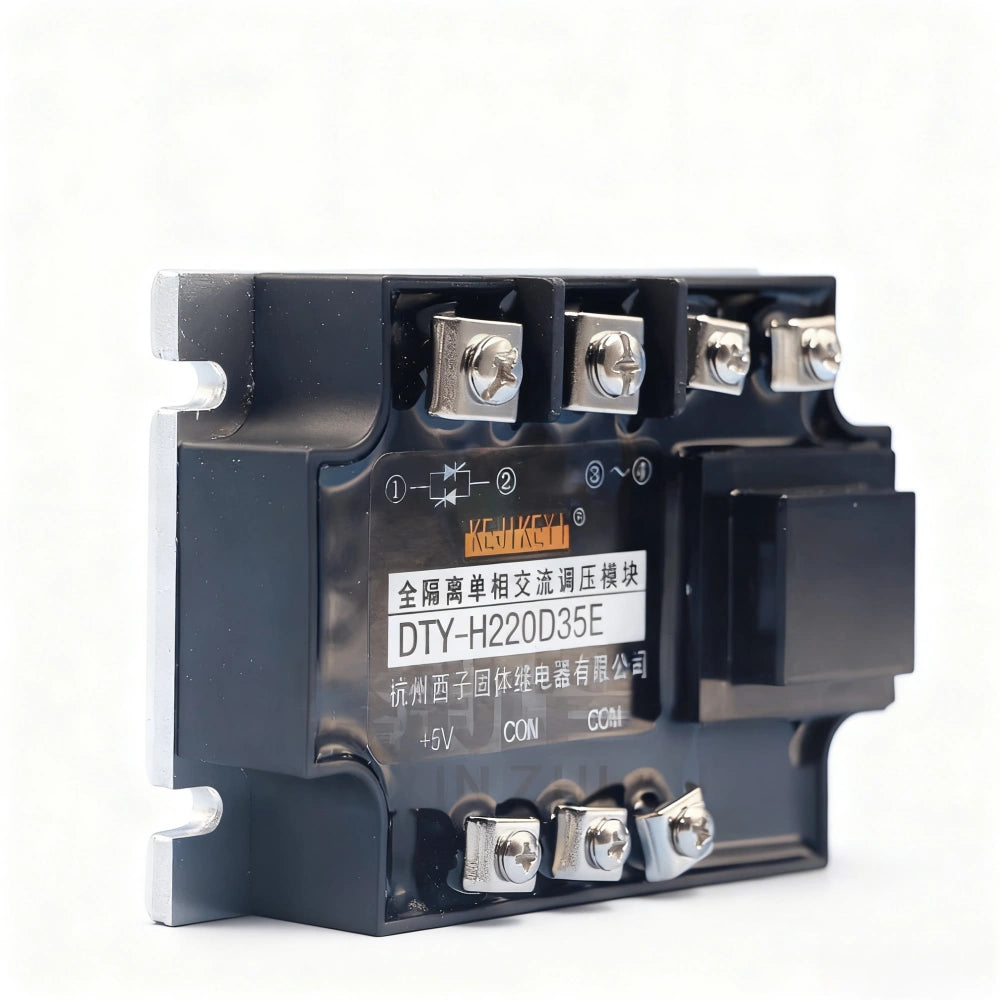 The DTY-H220D35E is an industrial-grade, fully-isolated single-phase AC voltage regulator module designed for precise power control in high-voltage AC applications such as UV printers, drying systems, heating platforms, and large-format inkjet machinery. Manufactured by KEJIKKEY, this phase angle control module ensures smooth and adjustable output voltage from 0 to 220V AC with up to 35A current handling capability.