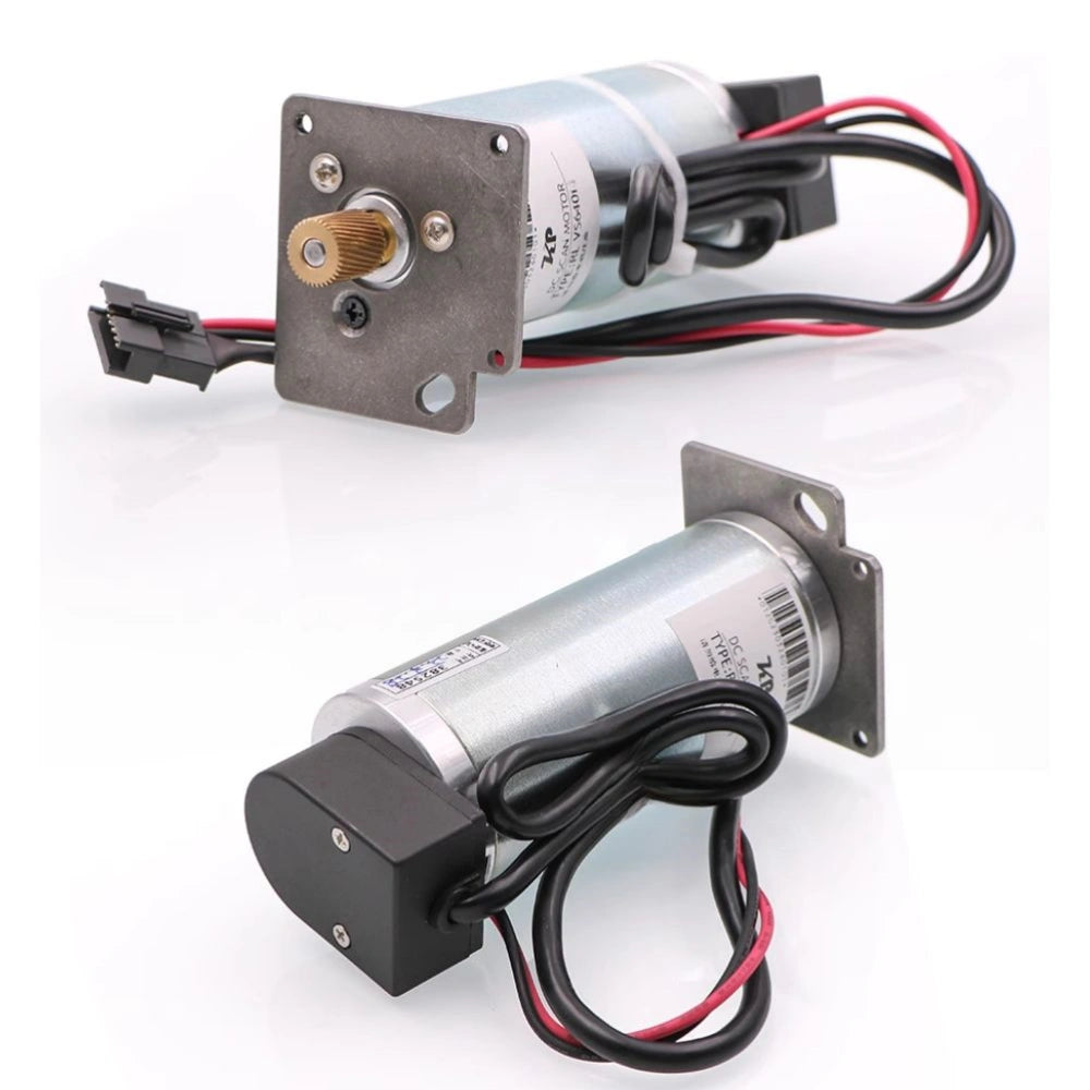 The motor features a pre-attached signal cable with plug-and-play compatibility and a gear drive shaft for seamless integration with the printer's mechanical system. It offers smooth operation, minimal noise, and excellent resistance to wear and corrosion.