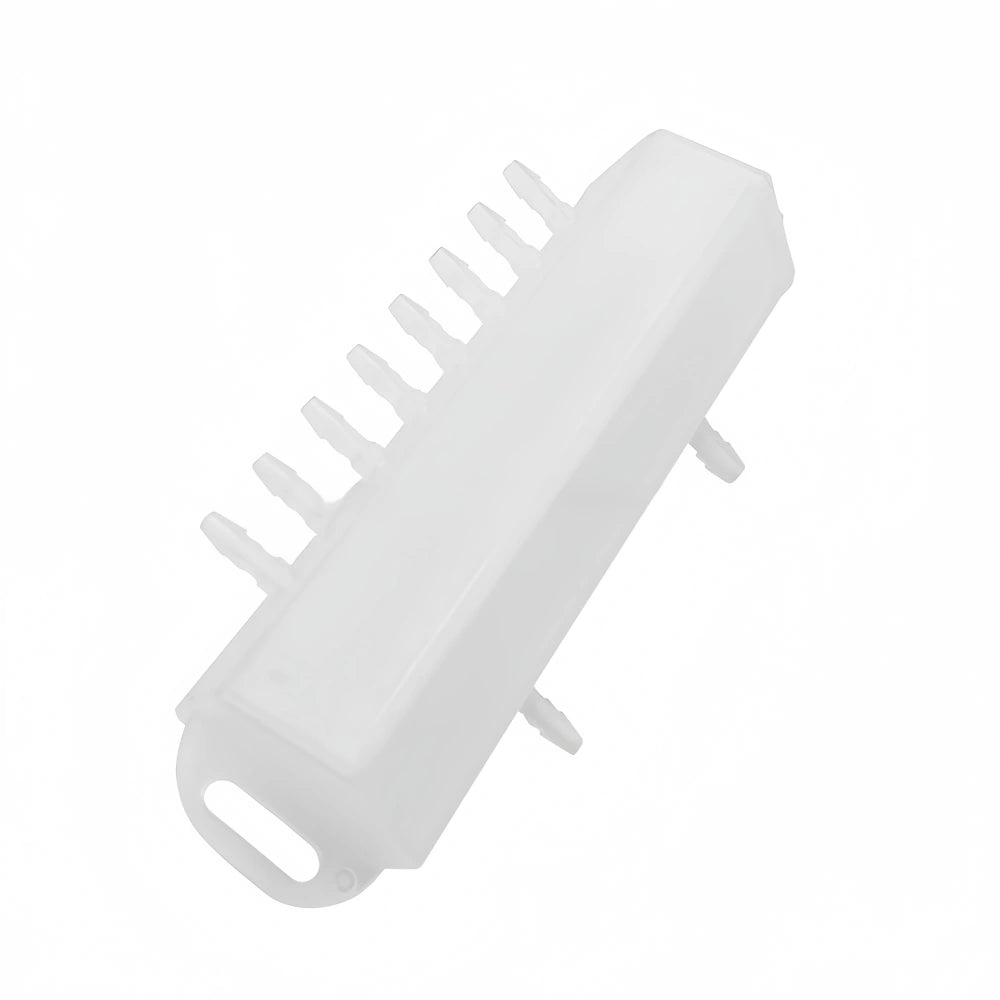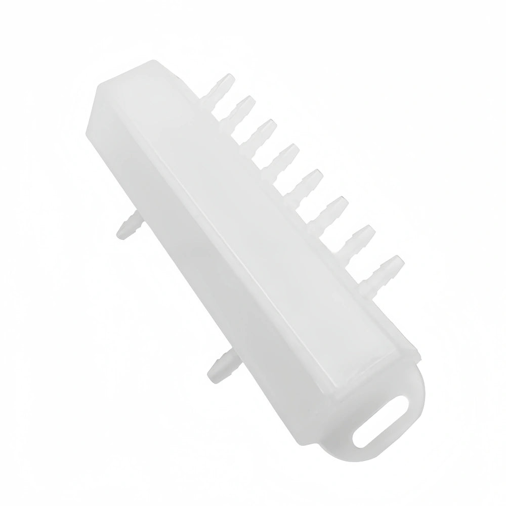 This ink splitter is designed for balanced and efficient ink distribution with 1 inlet, 1 integrated air hole (6×4mm), and 8 outlets. It is compatible with both 4×3mm and 5×3mm ink tubes, offering a compact and stable solution for mid-range printer systems.