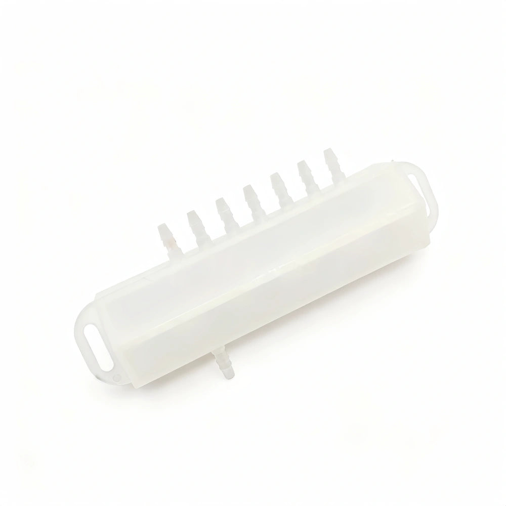 This high-capacity ink splitter features 1 inlet and 8 outlet ports, offering robust ink distribution without an integrated air hole. Model 4 is designed for systems that require multi-channel ink output but rely on external air pressure control or sealed circulation environments.