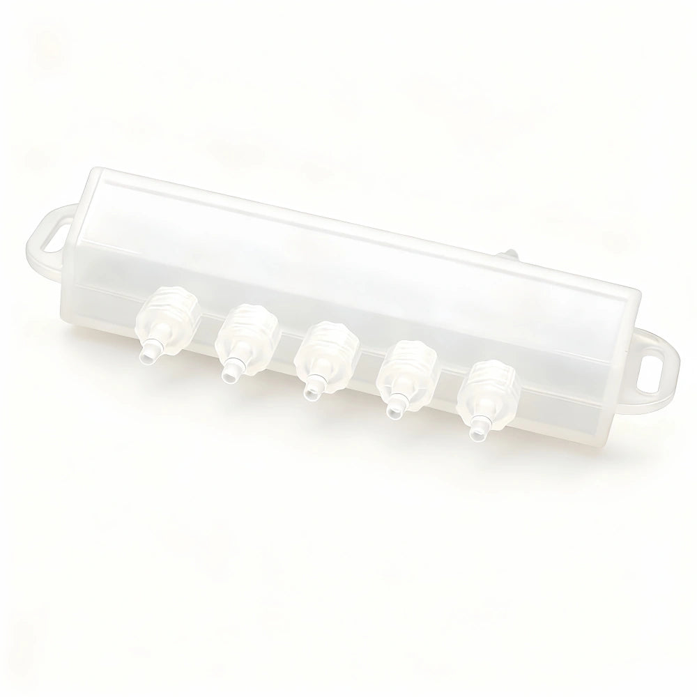 | Shunt - Model 9 | 1 Inlet 5 Outlets | Transparent Plastic | 1× In / 5× Out | 6×4mm or Ø4mm Ink Tube | Transparent |