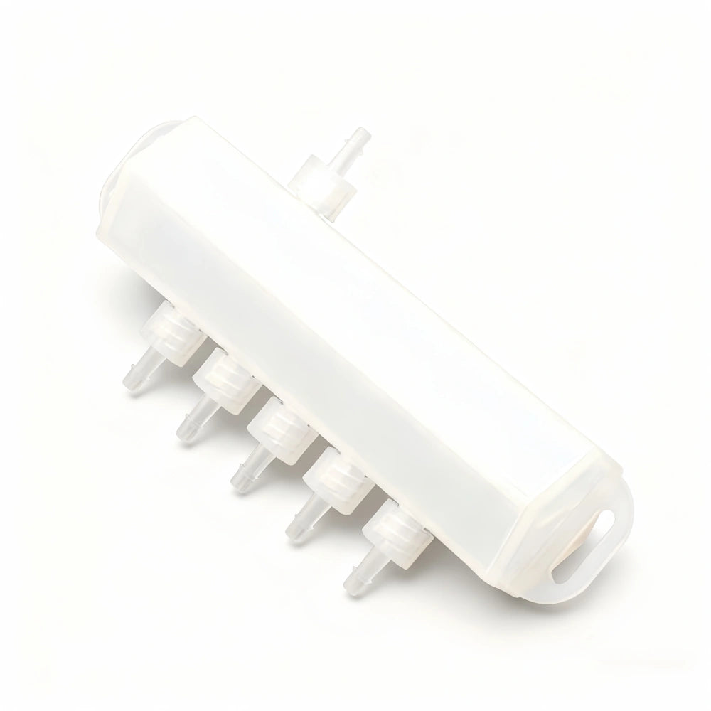 This model is ideal for maintaining consistent ink supply in multi-head printers, ensuring smooth and even ink circulation. The transparent structure makes it easy to monitor ink flow and prevent clogging.