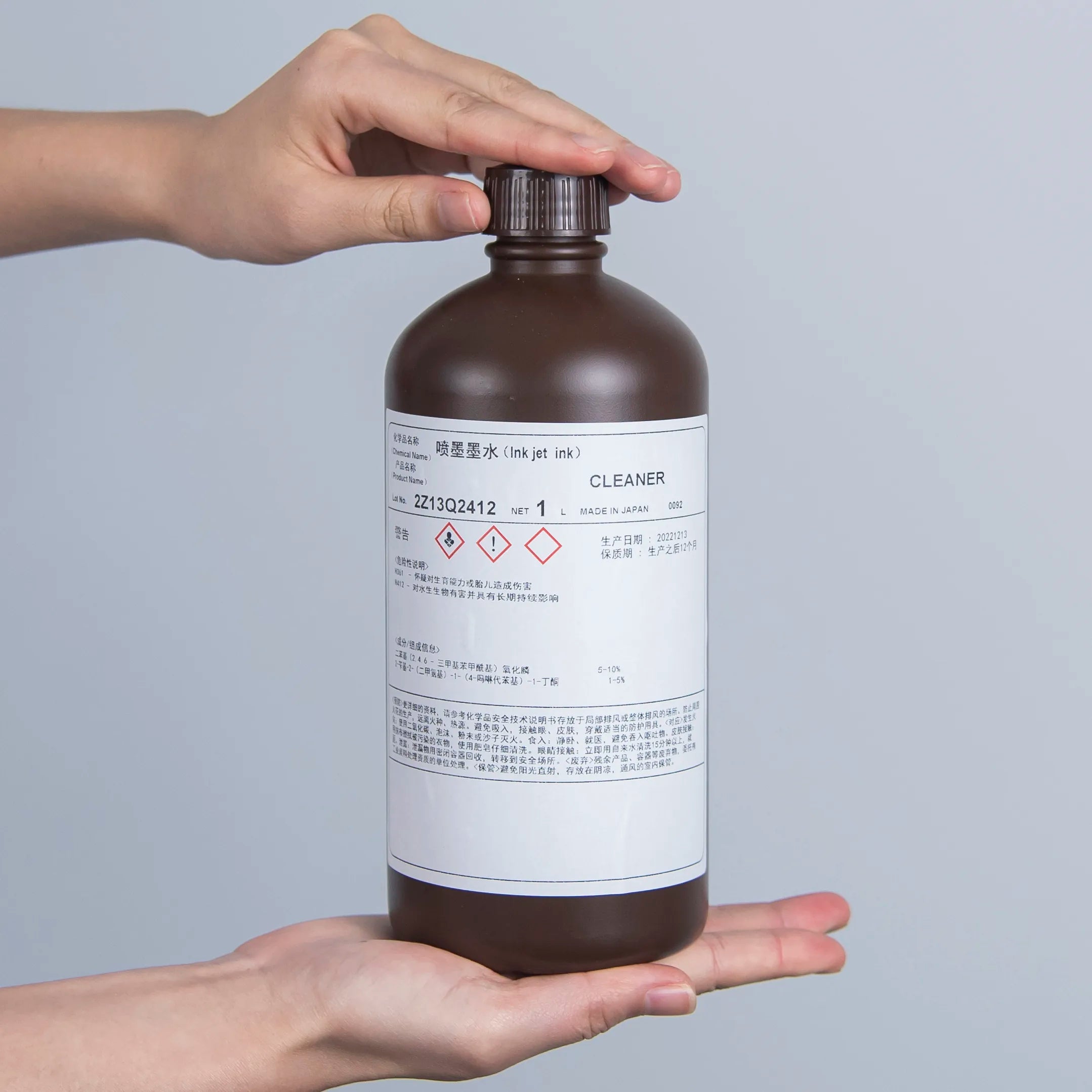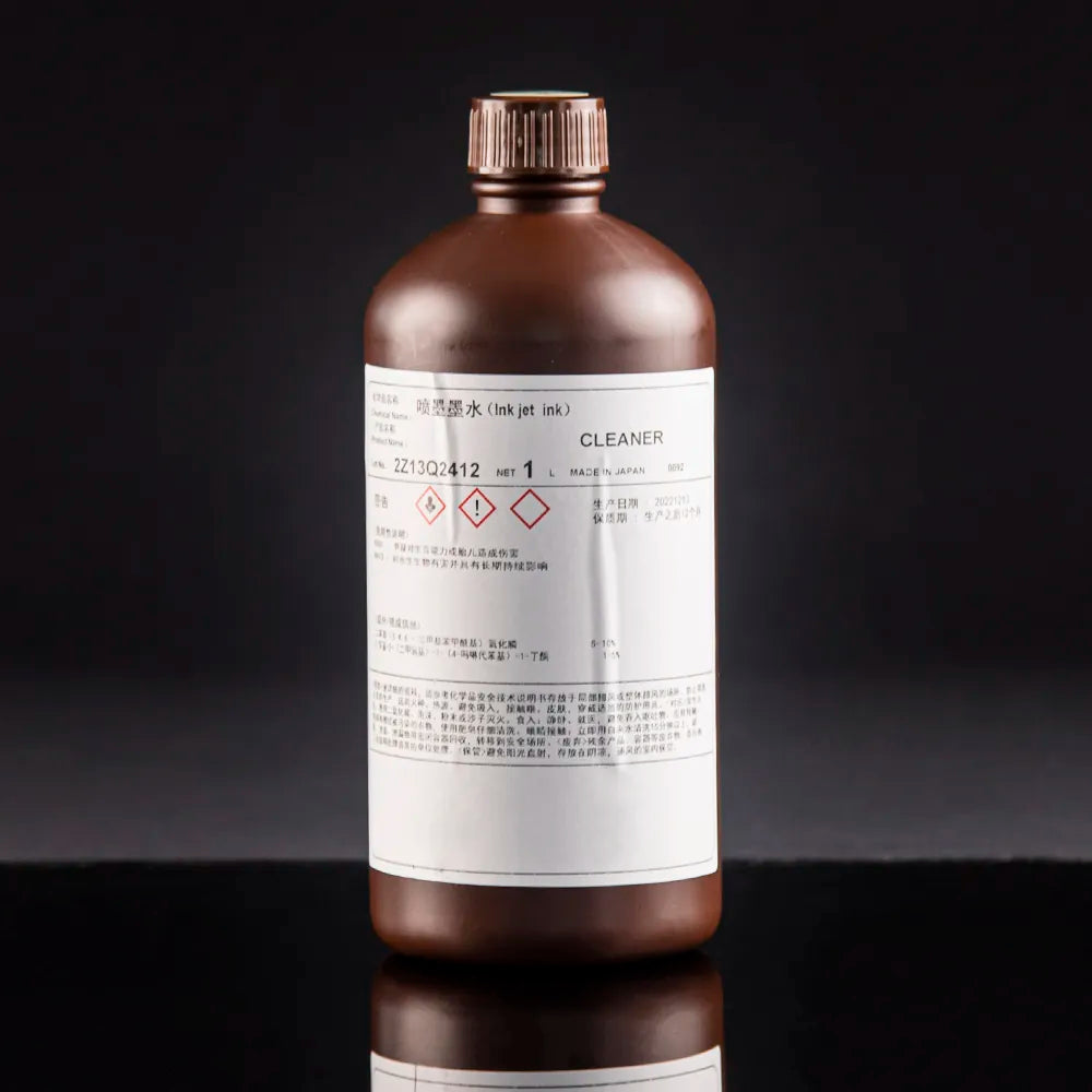 Professional UV-curable ink cleaning solution formulated to dissolve residues, clear micro-bubbles, and restore stable jetting without damaging printhead seals, dampers, or ink lines.