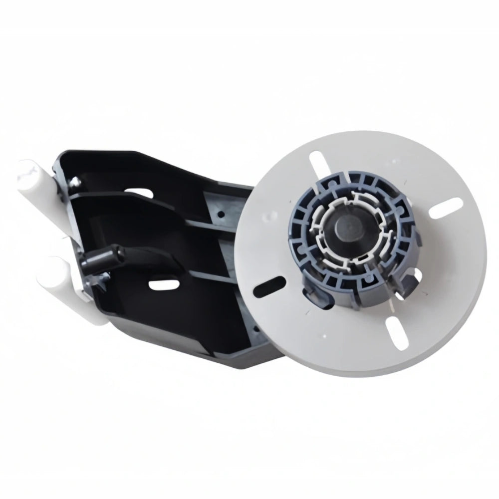This roll media holder assembly mounts on the paper feed motor side of Mutoh ValueJet 1638 printers. Its angled, torque-adjustable structure stabilizes roll rotation, compensates for media resistance, and minimizes feeding errors. For printers with serial numbers starting from GQ6U000308, Mutoh recommends using the straight roll media holder (Part No. PMEMU15515). The DG-43387 is a genuine Mutoh component that guarantees precise fit and reliable performance.